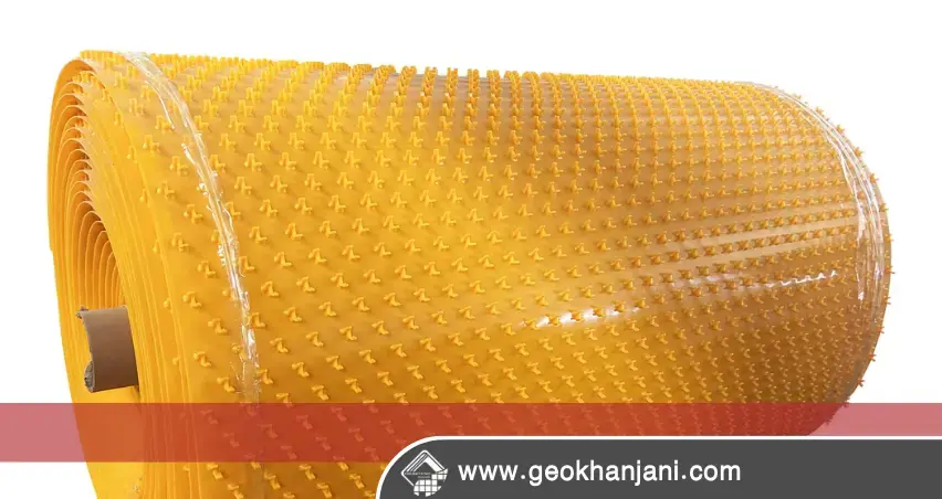 - ژئوممبران وی گریپ نوعی ورق پلیاتیلنی با گیرههای V شکل روی سطح است.